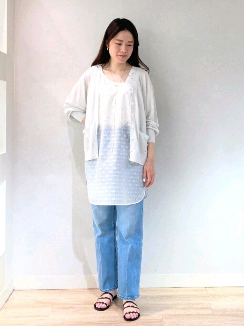 ●《手洗い可能》ラメシアーVネック カーディガン シアー感のあるシンプルなVネックカーディガン ラメ入りの淡いカラーは合わせやすく 薄手でゆったりめ、 真夏に羽織っても爽やかな印象 ●【KIRYU】ラメジャガードロングタンク ブラウス 華やかなラメ入りのカットジャガード 透け感もありレイヤードで いろんな着回しが楽しめます
