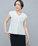 ●バックサテンジョーゼットVネックブラウス シンプルでフレンチスリーブなので インナー使いにもおすすめ サラッとした着心地で快適 コンパクトな見え感ながら フロントタックもあり身頃もしっかりあります ツルッとしすぎない、シャリ感があるので オフィス以外にきれいめカジュアルな着回しにも おすすめ ●ウォッシャブル配色パイピングタイトスカート サイズ38着用 7/14ベビーピンクはサイズ40着用