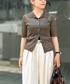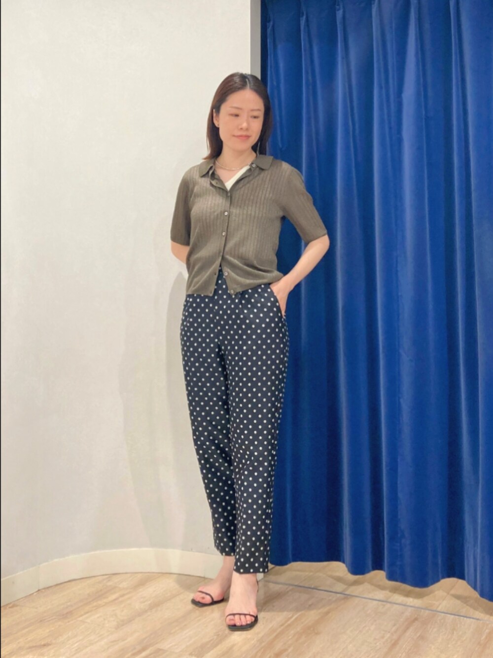 《手洗い可能》 ワイドリブシアーポロ衿カーディガン 釦で着方のアレンジのしやすい 襟付きカーディガン ウェーブ体型でも個人的には意外と着やすい ワイドリブでレーヨンが使われており 肌に密着しない着心地 カジュアルにもキレイめにも使える 光沢感とデザイン