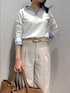 《手洗い可能》シャツレイヤード風スキッパーポロニット 首元、袖口はシャツをレイヤードしているような仕様になっており、どちらのベースカラーもサックスのレイヤードカラーがとても効いています 端境期の1枚着、ジャケットインナーとしても コンパクトで汎用性が高い印象 カジュアルにデニムやボリュームのある ボトムスにも🙆 ストレッチ性がありフィット感はありますが むちっとせず着心地が良い