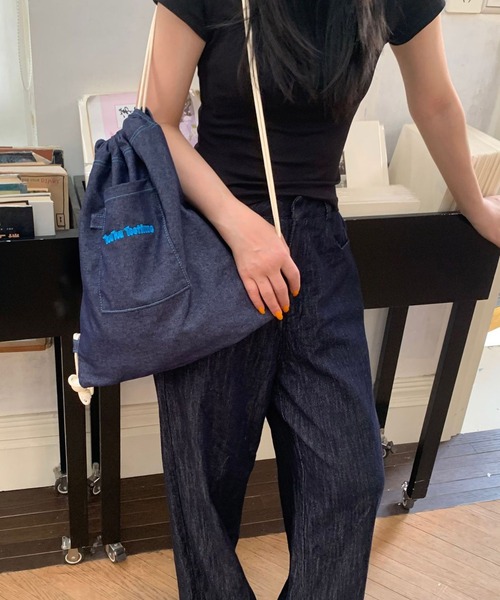 【 Port / ポート 】 ワンポイント ロゴ デニム ナップサック ■アイテム説明 柔らかなデニム風生地×ワンポイントロゴが大人可愛いナップサック。 シンプルなワンポイントロゴ入りで、ショルダー部分にはパールで甘さを、くたっと感がカジュアルさをプラス◎ ロゴTシャツ×デニム、ストリートコーデ、フェミニンなワンピースとも相性抜群。 ポケット横にはキーホルダーを付けられるループ付きなのでアレンジも楽しめます。 デイリー使いはもちろん、旅行やフェス、ジムなどにもおすすめのアイテムです。 ■仕様 ポケット×1 ※撮影・モニター環境等により実際の商品の色味と異なって見える場合がございます。 〈商品のお気に入り登録〉 お気に入りの登録をして頂きますと セールの通知・ラスト1点になった時の通知や、再入荷通知を受けることができます♡ 〈ブランドのお気に入り登録〉 新商品の発売や再入荷、タイムセールやクーポン発行のお知らせなど お得な情報を受け取ることができます。