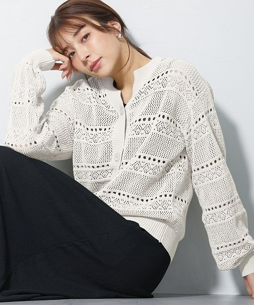 【高身長の方向け】手元まで美しく。洗える繊細レースカーディガン ■デザイン トレンドのレースカーディガンを、トールサイズ専用のシルエットで仕立てました。 最大のこだわりは、しっかり手首まで届く「ゆとりのある袖丈」。 腕を動かしても手首が出すぎず、繊細なレースの透け感を最大限に活かしたエレガントな着こなしが叶います。 ボーダー状に配置された繊細なレース模様が、着こなしに奥行きを与えます。 コットンならではのナチュラルな風合いが、上品な抜け感を演出します。 ■素材 天然素材ならではの柔らかな肌触りで、素肌に触れてもチクチクせずストレスフリー。 吸湿性・通気性に優れているため、汗ばむ季節の羽織りとしても、さらりと快適に着用いただけます。 ■おすすめのスタイリング マキシ丈のスカートやワイドパンツといった、トールサイズの方が得意とする ボリュームボトムスと合わせるのが特におすすめです。 カーディガンの裾リブが腰位置をさりげなくマークしてくれるため、 裾をアウトして着ても重心が下がらず、スッキリとした縦のラインを強調できます。 綿100%のマットな質感は、ツヤのあるボトムスやデニムとも相性◎です。 <仕様>綿100% 透け感:あり 伸縮性:あり 生地の厚み:普通 光沢感:なし 裏地:なし ポケット:なし 季節:春・夏 シルエット:普通 その他:前ボタン開き ※引っかかりにご注意ください <洗濯方法> 洗濯機OK ネット使用 ■キーワード 20代,30代,40代,50代,60代,はおり,オフィスカジュアル,トールサイズ,ベーシック,丈長,冷房対策,夏,夏春,無地,羽織,腕長,通勤通学,重ね着,高身長,高身長女子