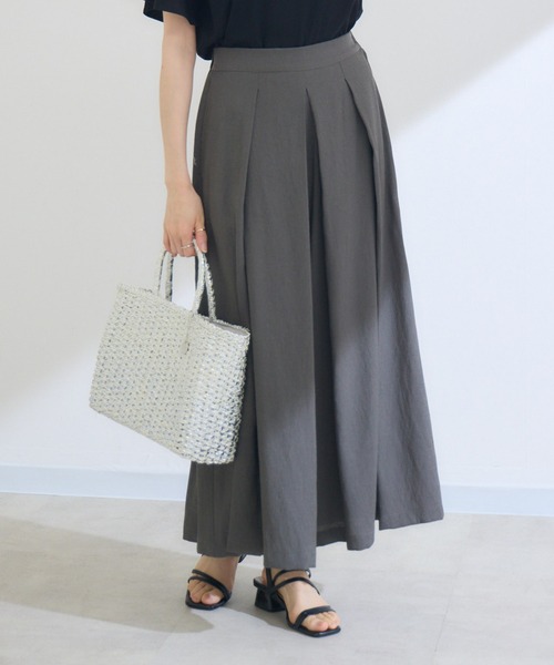 スカートのように揺れる清涼キュロット [素材] ・レーヨンにポリエステルと麻をブレンドした、心地よいドライタッチな質感に仕上げました。 ・麻混ならではのナチュラルな風合いがありつつ、レーヨンのしなやかさが加わることで、お出かけに相応しい上品な落ち感を叶えています。 [デザイン] ・中心と左右に施した深めのタックが、腰周りをすっきりと見せつつ裾に向かって贅沢なボリュームを生み出します。 ・広めに取った裾幅により、一見スカートのようにも見える優雅なフォルムが特徴です。 ・後ろウエストはゴム仕様でリラックスした履き心地を実現しながら、左脇のファスナーあきで腰回りは端正に整えました。 ・パンツの安心感とスカートの華やかさを両立させた、機能美の光る一着です。 [スタイリング] ・コンパクトなブラウスや、裾をドロストさせたカットソーを合わせれば、メリハリのある旬のコーディネートが完成します。 ・スカート派の方も取り入れやすいシルエットで、日常から特別なお出かけまで幅広いシーンに馴染みます。 ■光沢感:なし ■透け感:なし ■伸縮性:なし ■生地の厚さ:薄手 --------------------------------------------------- 【Pillini】 「Pillini/ピリーニ」 フィンランド語で「私の笛」 口笛を吹きながら笑顔で過ごせる… そんな何気ない豊かな毎日を彩るトレンド感のあるきれいめカジュアルウェアーを手に入りやすいプレミアムプライスで提案します。 --------------------------------------------------- ※照明や光の当たり具合で色味が違って見える場合があります。 ※システムの都合上、店舗より入荷が遅れる場合がございます。 【お買い物をよりお楽しみいただくために】 ・商品のお気に入り登録をおすすめします! ♡マーククリックで登録できます。 完売カラーの再入荷や、ラスト1点になったときの通知、 セールの際に通知などお得な情報を受けることができます。 ・ブランドのお気に入り登録もご一緒にお願いいたします! 新商品や再入荷、などいち早くブランドの最新情報をお届けします。