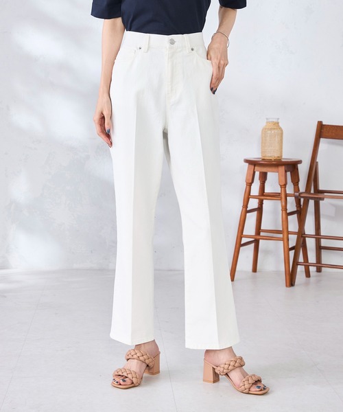 シルエットとはき心地にこだわった大人のデニム 【機能/素材】 ストレッチのきいたデニム生地を使用、さらにウエストの後ろにはすっきり見える平ゴムをINしました。 【デザイン】 センタープレス加工とやや裾広がりのフレアシルエットが、カジュアル見えしない大人のデニムスタイルを演出。 【お勧めスタイリング】 きれいめにはけるのでシャツやジャケットとも好相性。 ハイウエストデザインを生かしたトップスINもおすすめです。 【GALLORIA /ギャロ―リア】 ベーシックだけじゃ物足りない、ほどよくトレンドを取り入れ シーンレスにきちんと見える。 そんな願いを叶えてくれる、いまの空気感をまとった大人のデイリー服「GALLORIA」 買いやすいプライスで、バリエーション豊富に揃うライフスタイルに寄り添うコレクションを展開します ◆Instagram:@galloria.sns 公式Instagramでは最新情報を定期的に更新中!フォローしてお得な情報をゲット! ■商品のお気に入り登録のおすすめ■ 完売カラーの再入荷通知、ラスト1点、お得なクーポンやお値下をお知らせします。 ■ブランドのお気に入り登録のおすすめ■ 新商品や再入荷のお知らせ等、ブランドのお得なクーポンやお値下をお知らせします。