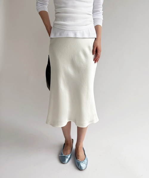 【26SS COLLECTION】 EDIT. FOR LULU トレンドのミディスカートです。シルクタッチのアセテートサテンを使用しています。洗い晒しのようなしわ加工がされており、鈍く光るヴィンテージライクな質感がポイントです。ウエストは微配色のストレッチベルトにしており、様々なウエストラインに馴染みやすく履き位置を調整できるようにしました。ボディはバイアスカットです。接触冷感がある為、これからの季節に向けても爽やかな肌触りです。30’sのランジェリーのような、愛らしい三色展開です。 手洗い表記ですが、水洗い後にややしわ感が強くなります。フラットな状態がお好みの方はドライクリーニングをおすすめいたします。裏地は水洗いに強いポリエステルを使用しております。 サイズを迷ったら… ウエスト位置高め、身体のラインにそうシルエットがお好みの方は34を ウエスト位置低め、身体から離れるシルエットがお好みの方は36を ※取り扱いについては、商品についている品質表示でご確認ください。 ※照明の関係により、実際よりも色味が違って見える場合があります。 またパソコン・スマートフォンなどの環境により、若干製品と画像のカラーが異なる場合もございます。 ※商品の色味は、商品アップ画像をご参照ください。 <気になったアイテムは『お気に入り』がおすすめです!> お気に入り登録した商品の再入荷・在庫情報・値下げなどの通知を受け取ることができます。 本体:手洗い可能