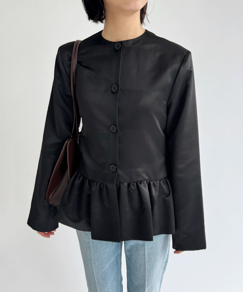 【26SS COLLECTION】 EDIT. FOR LULU 大胆にあしらわれた裾のフリルデザインと 身体のラインを美しく魅せる切替シルエットが特徴のジャケット。 程よく光沢感があるので、上品な印象。 洗練された構造と、遊び心のあるディテールのバランスが可愛い一着です。 デニムと合わせたカジュアルスタイルにも、 スラックスやスカートと合わせたフォーマルなスタイルにも◎ 【OPERA SPORT/オペラスポーツ】 2019年にStephanie GundelachとAwa Malinaがコペンハーゲンで立ち上げたOperaSPORT(オペラスポーツ)は、時代を問わないタイムレスなスタイルを提案しています。 サステナビリティに重点を置き、シーズンごとに小さなコレクションを発表して過剰生産を制限しています。 メーカー品番:K68PS BLACK 弊社カラー/メーカーカラー ブラック(001)/ BLACK 弊社サイズ/メーカーサイズ フリー(999)/S ※取り扱いについては、商品についている品質表示でご確認ください。 ※照明の関係により、実際よりも色味が違って見える場合があります。 またパソコン・スマートフォンなどの環境により、若干製品と画像のカラーが異なる場合もございます。 ※商品の色味は、商品アップ画像をご参照ください。 本体:手洗い可能
