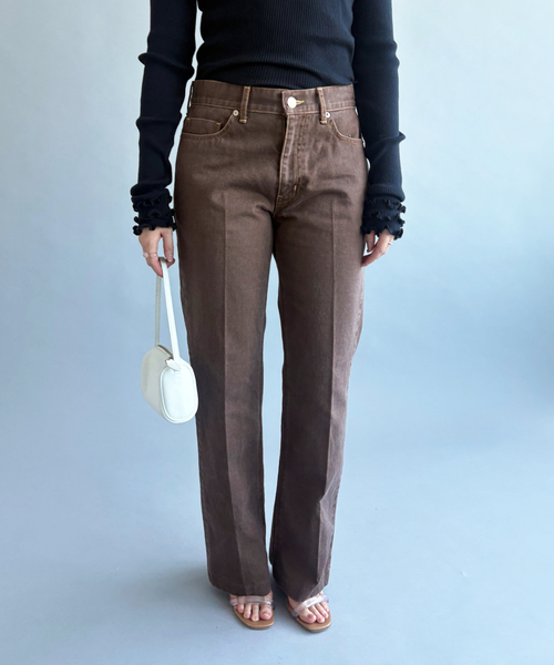 【26SS COLLECTION】 EDIT. FOR LULU NEPLA定番のセミフレアライン。 ブランド定番として継続展開している、唯一のシルエットです。 トレンドレスで、程よくゆとりをもたせた裾まわり。 シューフレアのライン、センタープレスで、脚を綺麗にみせてシャープなシルエットが特徴です。 ミドルライズのウエストを絞りすぎていないパターンで、腰位置で履くことのできるシルエット。 カラーはSTONE BROWN。 BROWNの12ozカラーデニムを、ストーンフェード加工させることで、程よく色落ちしたフェード感と絶妙なブラウンの色合いが特徴のデニム。 【NEPLA./ネプラ】 2020SSよりスタートしたNEOとPLANTEをかけ合わせた造語が由来のブランド。 ”BOTANIVCAL PRODUCT”をキーワードに天然素材をベースとして、タデアイ豆、炭といった植物性天然染料などを媒染として使用し、通常染料と掛け合わせてプロダクトを構築。 その染色も古くから伝わる伝統的な手法の風合いに魅力を見出しながら、現代の技術に再生し、洗練された表情に仕上げる。 その柔らかな色、風合いある生地にクラシックなディテール、デザインステッチワークが施されている。 時を経て意味のあるものを残すため、1つ1つ"丁寧さ"にこだわったプロダクトが魅力。 モダンで上質な日常着を提案しています。 メーカー品番:WOFLA-6S 弊社カラー/メーカーカラー ブラウン(020)/STONE BROWN 弊社サイズ/メーカーサイズ 23(230)/23 24(240)/24 25(250)/25 ※取り扱いについては、商品についている品質表示でご確認ください。 ※照明の関係により、実際よりも色味が違って見える場合があります。 またパソコン・スマートフォンなどの環境により、若干製品と画像のカラーが異なる場合もございます。 ※商品の色味は、商品アップ画像をご参照ください。 <気になったアイテムは『お気に入り』がおすすめです!> お気に入り登録した商品の再入荷・在庫情報・値下げなどの通知を受け取ることができます。 モデルサイズ:身長:163cm 着用サイズ:25 本体:洗濯機洗い(弱)