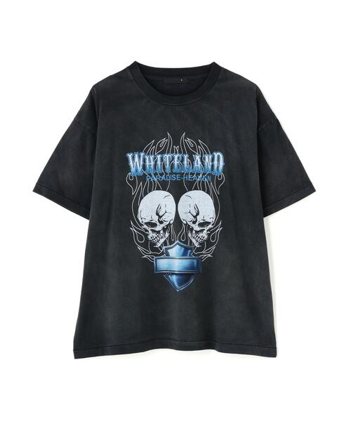 WHITELAND ヴィンテージバンドTのような存在感を、現代的なバランスで再構築したグラフィックTシャツ。 フェード感のあるブラックボディに、ツインスカルとフレイム、メタリックブルーのエンブレムを大胆にレイアウト。 ストリートとロックテイストを掛け合わせた、1枚で主役になるデザインです。 ほどよい厚みのコットン生地とリラックスシルエットで、夏はもちろんオールシーズン着まわし可能。 コーデの雰囲気を一瞬で引き上げてくれる、存在感抜群の一着。 ■POINT ツインスカル × フレイムの迫力あるグラフィック 海外ストリートのムードを漂わせる、他にはないデザイン。 メタリックブルーのアクセント ダークトーンの中で光るブルーがスタイリングに洒落感をプラス。 フェード加工のブラック 古着のような抜け感で、着るだけでこなれた印象に。 ゆったりオーバーサイズ 男女問わず使いやすく、旬のシルエットを簡単に作れる。 ■STYLE TIP ワイドデニム × スニーカー グラフィックが映える王道ストリート。薄めのブルーデニムとも相性◎。 ブラックカーゴ × ブーツ ハードなグラフィックに合わせた重厚スタイル。モード寄りにも振れる。 ショートパンツ × サンダル 夏はラフに。Tシャツの迫力があるのでシンプルボトムでOK。 レザージャケットを羽織って秋仕様 ロックな雰囲気が加速し、夜のスタイリングにもハマる。 WHITELAND・・・14S/SにスタートしたLHPの限定先行販売ブランド。 モードな雰囲気とトレンドをMIXさせ、細部のこだわりを持ちながらもデザインは全て透明感がある事がテーマになっている。 2017年SSシーズンよりWHITELANDに改名。