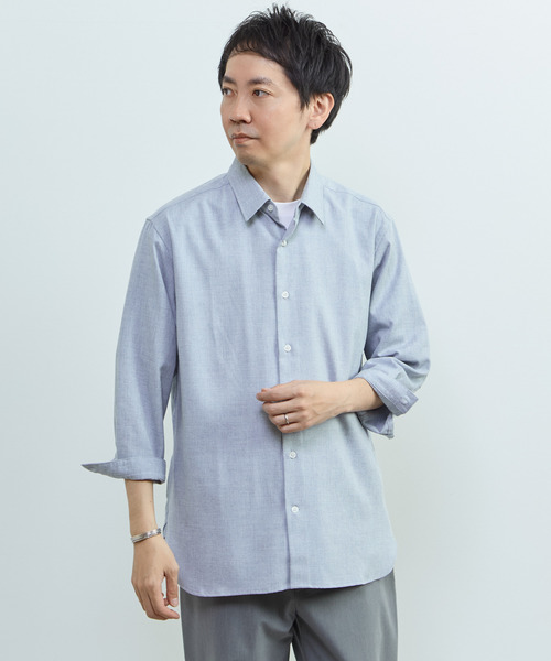 <デザインの特徴> リネンライクなポリエステル素材を使用したスタンダードなレギュラーカラー8分袖シャツです。 シンプルながらも素材感のある表情が、着るだけで季節感と上品さを演出します。 脇のラウンドカットを深くとることで羽織りシャツとしての抜け感をアップ。 1枚でさらっと着こなすのはもちろん、インナーに合わせて羽織としても様になる、使い勝手の良い1枚です。 <素材について> ポリエステルのシックアンドシンの糸により濃く染まるところと薄く染まるところの差がムラ染のように見える素材です。 視覚的清涼感と、天然素材のような色合いがあり、ポリエステル特有の取り扱い易さが特徴の素材です。 <サイズ感・シルエットの特徴> 適度なゆとりでベーシックなフィット感のシルエット。 タイト過ぎずルーズ過ぎず、程よいバランスに仕上げました。 ボトムスを選ばず、デニムやワイドパンツ、きれいめのスラックスにも自然になじむ、着回し力の高いシルエットです。 <サイズ表記> 2=S、3=M、4=L