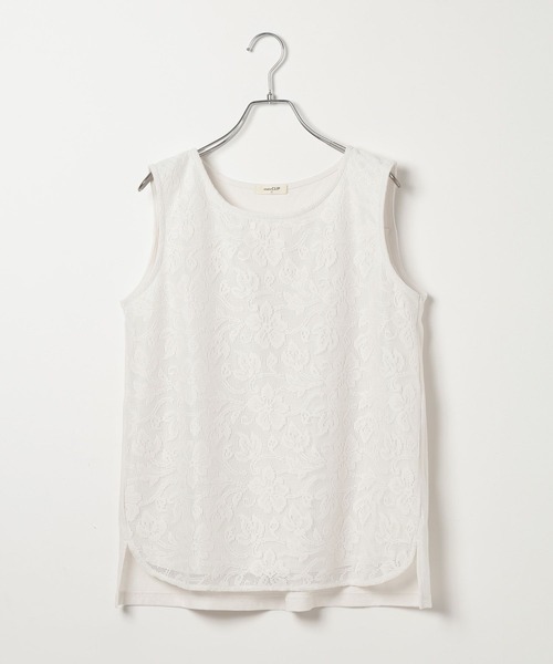 綺麗めスタイルにも合わせやすい一枚 様々な着こなしが楽しめるタンクトップ ーーー 【素材】 本体は柔らかく着心地の良い天竺素材を使用、 前身頃は上にメッシュレースを重ねています。 【デザイン】 レースのドッキングデザインが新鮮なタンクトップ。 タンクトップですがブラウス見えするので、綺麗めスタイルにも合わせやすい一着です。 合わせるアイテムを変えて大人なカジュアルスタイルも、ヘルシースタイルもお楽しみいただけます。 トップス インナー タンク タンクトップ レース ーーー 【スタイリング】 ボトムはデニムパンツ、シャツやカーデを羽織った大人カジュアルな着こなしがおすすめ。 サロペットのインに合わせたヘルシーな着こなしも素敵です◎