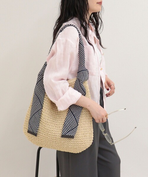 ◇fredy emue◇ 【2026 SS】 軽やかに持てる、ラメハンドルトート ●point ・ラメテープをあしらったワンハンドルデザインのトートバッグ ・柔らかなペーパー素材がシーズンムードをプラス ・さりげなくきらめくハンドルがコーデのアクセントに ・バッグの口はマグネット仕様で開け閉めも簡単 ・荷物がしっかり入るサイズ感で通勤通学にもおすすめ ・内側にはポケットを備え、小物の収納にも便利な仕様 ・春夏コーデのアクセントとしておすすめのアイテムです 《収納の目安》 ・A5サイズファイル ・折り畳み傘 ・ポーチ ・長財布 ・スマートフォン ◇商品のお気に入り登録◇ 【お気に入りに登録】を是非ご活用ください。 再入荷の通知がいち早く届きます。 ●お取扱い上のご注意● *アテンションタグを必ずご確認の上、着用又はお取り扱い下さい。 *店頭及び屋外での撮影画像は、光の当たり具合で色味が違って見える場合があります。商品の色味は、スタジオ撮影の画像をご参照下さい。 *商品画像に関しては出来る限り忠実に表示出来るよう努めておりますが、お客様がご利用のモニターの設定及び特性により、実際の商品と比較し色味に若干の誤差が生じる場合があります。 *生地の特性上、やや匂いが強く感じられるものもございますので予めご了承下さい。 *濃色製品のため、水や摩擦により色落ち・色移りする場合があります。衣類等との接触や密着・密閉状態での使用・保管にはご注意ください。 ※サンプルでの採寸のため、サイズ表はあくまで目安となります。予めご了承ください。