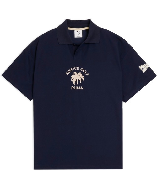 商品名 メンズ ゴルフ PUMA x EDIFICE パームロゴ 半袖 ポロシャツ PUMAxEDIFICE PALM LOGO POLO 商品情報 フレンチシックな空気感を纏う、上品な仕上がり。 PUMA x EDIFICEコレクションからパームロゴ 半袖 ポロシャツが登場。コラボレーションならではの特別感を感じさせるデザインで、さりげなく存在感をプラスします。程よくフィットするシルエットと上質な素材感が調和し、カジュアルからきれいめまで幅広いスタイリングに対応。軽やかさと品の良さを兼ね備えた一着で、日常のコーディネートを洗練された印象に仕上げます。 【PUMA GOLF x EDIFICE GOLF】 EDIFICEの上質で品のある感性から誕生したゴルフレーベル「EDIFICE GOLF」。本コレクションでは、PUMA GOLFが持つカリフォルニアの開放的なムードと、フレンチシックなエッセンスを融合しました。ゴルフシーンから日常までシームレスに楽しめるウェアを中心に、アクセサリーまで含めたトータルスタイリングを提案。テーマは「フレンチシック x LAムード」。フレンチチェックとパームツリーをキーモチーフに、春夏らしいポップさと大胆さを大人らしく仕上げた、新しいゴルフスタイルをお届けします。 詳細 レギュラー丈 半袖 パームロゴ PUMA x EDIFICEディティール