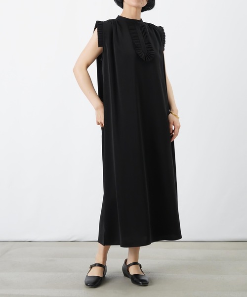 2026 Spring & Summer 【ほどよいプリーツが目を惹くプリーツフリルワンピース】 ◆Design 同素材のプリーツ飾りをあしらった、ロングワンピース。 袖やフロント、背中に施された繊細なプリーツディティールが、 さりげないアクセントをプラスします。 甘さを抑えたブラックとチャコールグレーのカラー展開で 上品かつ、大人な印象に仕上げました。 ◆Fabric ・さらりとしたシワになりにくい素材。 ◆color ・ブラック、チャコールグレーの2色展開です。 ◆Styling ・ベルトやシャツでウエストマークし、メリハリのあるスタイルに。 ・イージーパンツをレイヤードしたラフなこなれたスタイルに。 ・シアーインナーを合わせた女性らしいスタイルもオススメです◎ -------------------------------- 生地の厚さ:中間 透け感:なし 伸縮性:ややあり 光沢感:あり 裏地:なし 洗濯:ドライクリーニング可 -------------------------------- 【お買い物をよりお楽しみいただくために】 〇商品のお気に入り登録 完売カラーの再入荷や、完売間近の通知、セールの通知を受けることができます。 〇ブランドのお気に入り登録 新商品や再入荷など、いち早くブランドのお得な情報を受け取ることができます。 【♡をクリック!ご登録お願いします!】