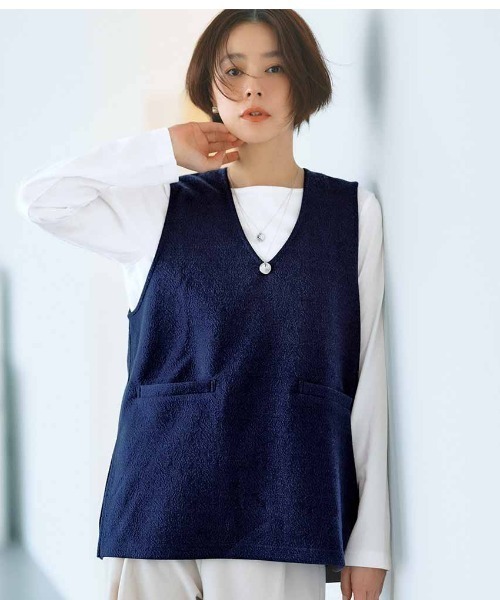 そのままセットで着映えて、高見え。 洗濯機で洗える気軽さも優秀! ふくれジャカード素材で仕立てたジレは、伸びやかな着心地で腰まわりが隠れるロング丈。 インの白カットソーはさりげないデザイン入りのボートネックできれいめに。 ●セット内容 / ジレ1枚、長袖Tシャツ1枚 ※フェリシモの商品には、紐などでくくられている紙タグは付属しておりません。