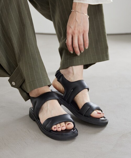 デイリーコーデにぴったりな、歩きやすさを叶えたフラットサンダル。 ■デザイン ぷっくりとしたアッパーデザインが印象的なフラット型サンダル。 ゴム仕様のバックストラップ付きで安定感もあり、着脱も簡単にできるのが嬉しいポイントです。 ふかふかのアッパーはソフトな肌触りでフィット感があり、痛くなりにくいように配慮しているため、快適にお使いいただけます。 ベーシックなブラック、肌に馴染む優しい色合いのオリーブに加え、足元を華やかに彩るシルバーカラーの3色をご用意しました。 ■コーディネート 安定感のあるフラットサンダルは、タウンユースにはもちろん夏のレジャーやリゾートまで、さまざまなシーンで活躍します。 パンツルックからフェミニンなワンピースにも幅広くマッチする汎用性の高い一品は、旅行にもおすすめです。 【注意事項】 ※商品に「取り扱い上の注意書き」、「洗濯表示」がございます場合は、使用前に必ずご確認ください。 ※商品画像は、光の当たり具合やパソコンなどの閲覧環境により、実際の色味と異なって見える場合がございます。あらかじめご了承ください。 ※商品の色味の目安は、商品単体の画像をご参照ください。 ※シューズの重量は、シューズ本体のみ両足の重量となります。箱や付属品は計測に含まれません。 ※商品に不良が無い場合、包装紙および箱の破損がございましても発送いたします。あらかじめご了承ください。 ※画像の商品はサンプルです。実際の商品と色味、仕様、加工、サイズ、素材等が若干異なる場合がございます。 ※工場の生産の都合上、納期が変更になる場合がございます。発送日の前後についてはあらかじめご了承ください。 ※入荷状況により、お客様への発送が店頭販売より遅れる場合もございます。 店舗へお問い合わせの際は、全国のBEAUTY&YOUTH各店舗まで下記の品名/品番をお申し付けください。 品名:BY LL PUKU STETCH SNDL20 品番:18316000022