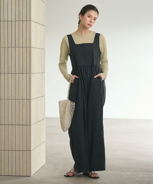 【WEB限定 Wardrobe DAILY MINIMAL】ギャザーノースリーブ オールインワン 接触冷感 UVカット はっ水