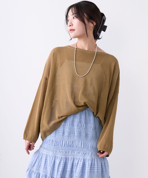 人気のボートネックニットに夏にも最適な涼しげ素材が登場! 透ハイゲージで編み立てた編み地は、通気性も良く程よい透け感で夏にピッタリなニットに仕上がっています。 肌寒い時にはインナーにロンTを、暑い時期にはインナーにタンクトップやキャミソールを。 気温に左右されることなくコーディネートをお楽しみいただける一枚です。 適度な肌見せと清涼感、大人っぽい抜け感を両立できる優秀アイテムです。 全色MICA&DEALオリジナルカラーで染めた糸を使用しています。 【fabric】 上質な綿にハイツイストナイロンを混紡した糸を使用しています。 清涼感と天然素材の肌触りの良いバランスが取れているのも特徴です。 また、長く着用しても毛羽が出にくく扱いやすいのも嬉しいポイントです。 -------------------------------------- 透け感:あり 裏地:なし 伸縮性:あり 光沢感:なし 生地の厚さ:普通 --------------------------------------水洗い可 *詳しくは商品の洗濯表示にてご確認をお願い致します。 【coordinate】 程よい透け感のあるニットで、ヘルシーなパンツスタイルから大人フェミニンなスカートスタイルまで幅広くお楽しみいただけます。 デニムと合わせてカジュアルダウンさせても◎ シンプルなニットには大ぶりなアクセサリーが映えます。 ※商品画像はできる限り実物の色に近づけるよう徹底しておりますが、お使いのデバイスのモニター設定、お部屋の照明等の閲覧環境により実際の色味と異なって見える場合がございます。 ※画像の商品はサンプルです。実際の商品と仕様、加工が若干異なる場合があります。予めご了承くださいませ。 ▼商品のお気に入り登録 お気に入りアイテムの値下げ・再入荷・在庫1点などの通知を受け取ることができます。 ▼ブランドのお気に入り登録 新商品や再入荷、クーポン配布などのお得な情報を受け取ることができます。