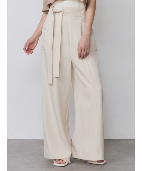 ウエストのリボンデザインがポイントのパンツ きれいめにもカジュアルにも決まるアイテム◎ ■アイテム 落ち感のある素材を使用した、モードな印象のタックパンツ。 ウエスト周りにタックを入れることで立体感を出し、動くたびにきれいなドレープが出るシルエットに仕上げています。 フロントのファスナーディテールがさりげないアクセントになり、シンプルながらも存在感のある1本です。 ZIP上でかた結びするディティールもポイント◎ ワイドなシルエットで脚のラインを拾わず、リラックス感のある履き心地です。 ウエストは程よくフィットし、ルーズすぎないバランスに仕上げてます。 落ち感と程よいハリ感を兼ね備えた素材を使用し、きれいめにもカジュアルにも対応します。 ウエストのデザインが映えるようコンパクトなトップスやショート丈アイテムと合わせるとバランスよく着用できます。 ジャケットを合わせたモードスタイルから、ニットでのデイリーコーデまで幅広く活躍します。 -------------------------------------------- 生地の厚さ:普通 伸縮性:なし ポケット:あり サイズ感:やや太め -------------------------------------------- 【知って得する便利機能◎ 】 ■商品のお気に入り登録 再入荷時、ラスト1点の時にお知らせします。 ■ブランドのお気に入り登録 新商品やお得な情報など、いち早くお得な情報をゲット! ぜひご活用ください! ※着用画像はフラッシュの加減で実際の製品と色味等が異なる場合がございますので、生地のズームアップ画像をご確認ください。 ※ご利用の端末画面の設定により実際の商品と色味が異なる場合がございます。