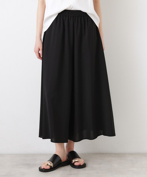 【デザインポイント】 毎年好評のタンブラーブッチャー素材を、機能性を高めた“サスティナクールブッチャー”にアップデート。 スカート見えするたっぷり分量のワイドシルエットで、動くたびに揺れる上品なドレープ感が魅力です。 ウエストはすっきり見えつつ、ヒップや脚のラインを自然にカバーできるバランスに仕上げています。 【スタイリングポイント】 Tシャツを合わせるだけでラフになりすぎず、きちんと感のある着こなしに。 ロゴT×スニーカーで大人カジュアル、ニットやブラウス×サンダルで女性らしいスタイルにも好相性。 トップス次第でオン・オフ問わず着回せます。 【素材ポイント】 さらりとしたドライタッチで肌離れがよく、暑い季節も快適。 接触冷感とUVカット機能を備え、日常使いにうれしい機能性も充実。 きれいめな表面感でありながらシワになりにくく、扱いやすいのもポイントです。 【仕様】 ・ライトベージュ(051)のみ裏地あり ・ポケット数:横×2 ・ウエスト総ゴム ※こちらの商品はやや透け感があります。 ※この製品は、太陽光線中の紫外線(UV)を通しにくくします。この効果は永久的ではありません。 ※照明の関係により、実際よりも色味が違って見える場合があります。また、パソコン・スマートフォンなどの環境により、若干製品と画像のカラーが異なる場合もございます。 モデル情報:身長168cm B81 W60 H89 着用サイズ:02(M) 店舗へのお問い合わせ商品番号:F58-65041 ●製品寸法: 01(S):W64~74cm H104cm 股下49cm 前股上42cm 渡り幅40cm 裾幅49cm 02(M):W67~77cm H105cm 股下50cm 前股上43cm 渡り幅40cm 裾幅52cm 03(L):W70~80cm H106cm 股下51cm 前股上44cm 渡り幅40cm 裾幅55cm 備考:
