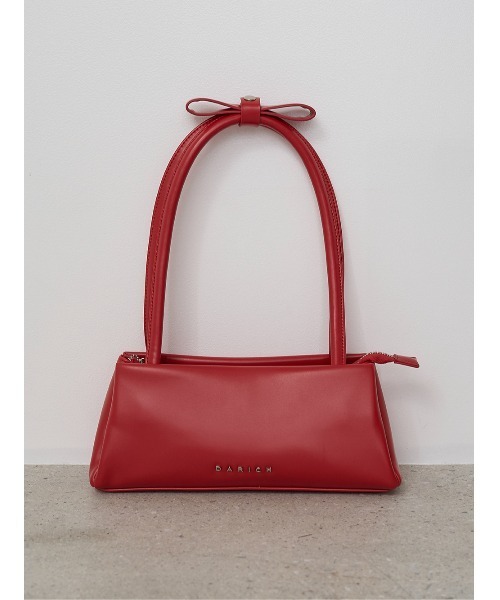 【なりたいムードで選ぶ、この春主役のハンドバッグ】 【Design】 横長のすっきりとしたフォルムが、スタイリングを一気に引き締めるハンドバッグ。 シャープなシルエットに、トップ部分の立体リボンがアクセントになり、甘さと洗練をバランスよく両立させました。 細めのロングハンドルは肩掛けしやすく、持つだけでコーデ全体のバランスが整う絶妙なサイズ感◎ フロントにはDarichロゴ金具をあしらい、シンプルな中にもブランドらしい存在感をプラスしました。 開口部はファスナー仕様で中身が見えにくく、実用性も兼ね備えたデザイン。 ホワイトとブラックはドット柄にすることで、スタイリングに程よい甘さと遊び心を♡ ピンクとレッドは無地仕様にすることで、カラーそのものの美しさを引き立て、より洗練された印象に仕上げています。 “色で選ぶ”だけじゃなく、その日の気分やスタイルに合わせて“雰囲気で選べる”のがこのバッグの魅力です! 【Styling】 ミニ丈スタイルに合わせれば、横長フォルムが縦ラインを強調しバランスよくまとまります。 デニムやスウェットなどのカジュアルスタイルに合わせても、リボンディテールが女性らしさをプラス。 あえてラフなコーデに合わせて“きれいめ要素”を足すのもおすすめです。 ドット柄は甘めコーデのアクセントとして取り入れたり、モノトーンコーデに遊び心を加えるポイントに。 無地カラーはワントーンコーデや差し色使いで、より洗練された印象を演出します。 シーンやテイストを問わず活躍する、スタイリングの完成度を高めてくれるバッグです。 【Fabric】 程よいハリとツヤ感のあるフェイクレザー素材を使用。 甘さを引き立てホワイト・柔らかく上品なピンク・コーデの主役になるレッド・引き締め役にもなるブラックの4色展開。
