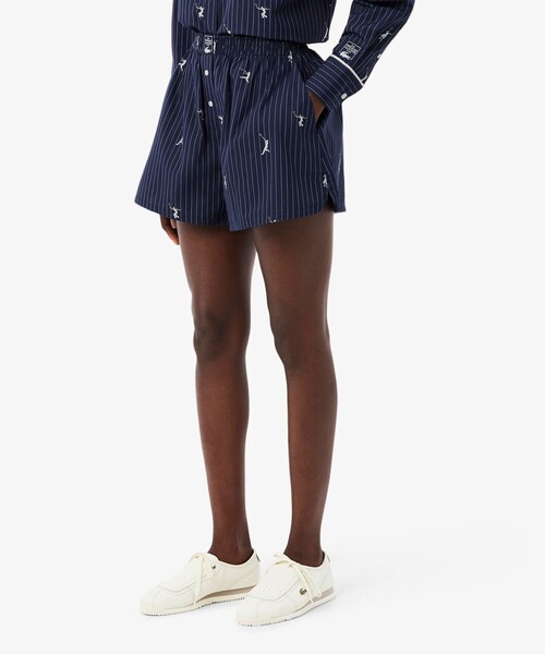 クラシックなピンストライプにテニスの躍動を織り込んだショートパンツ ・パリッとした風合いに清潔感を宿すコットン100%仕立てのポプリン素材 ・クラシックなピンストライプ柄に、躍動するテニスプレイヤーの絵柄をジャカード ・脚まわりにゆとりを持たせたボクサーショーツデザイン ・ゴムウエスト中央に織りネーム ・背面にワニロゴパッチを配置 ・同デザインのセットアップショーツもリリースあり 品番:CF0586-99 ・OVERSIZE FIT