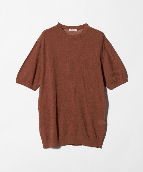 リゾートムードと洗練を纏う、軽やかな表情の半袖クルーネックニット ■デザイン 清涼感のある編地で仕立てた半袖クルーネックニットです。 首元に沿うよう計算されたネックラインが、すっきりと綺麗な印象を演出します。 サイズはほどよくゆとりのあるフィットで、素材の表情と相まってリラックスしたムードに仕上がっています。 シンプルな佇まいの中に軽快さと抜け感があり、スタイルに自然な余裕を与える一枚です。 ■素材 イタリアメーカーのリネンとコットンをブレンドした糸を使用し、天竺編みで表現しています。 リネンならではのナチュラルな表情に、シアーで透け感のある編地が加わり、ファッション性とリゾート感を高める素材感が特徴です。 ドライでサラっとしたタッチが心地よく、フェード感のある色合いも魅力です。 ■コーディネート セットアップや軽い羽織もののインナーとしてはもちろん、リラックスした一枚着のニットスタイルにも適しています。 白Tシャツの上に重ねた際にインナーがさりげなく透けることで、色気と軽やかさが加わる着こなしも楽しめます。 上品さとリゾートムードを併せ持ち、夏らしい大人のスタイリングを完成させてくれる一着です。 ============================ 裏地:なし 透け感:あり 光沢感:ややあり ============================ 【注意事項】 ※商品に「取り扱い上の注意書き」、「洗濯表示」がございます場合は、使用前に必ずご確認ください。 ※商品画像は、光の当たり具合やパソコンなどの閲覧環境により、実際の色味と異なって見える場合がございます。あらかじめご了承ください。 ※商品の色味の目安は、商品単体の画像をご参照ください。 店舗へお問い合わせの際は、全国のUNITED ARROWS各店舗まで下記の品名/品番をお申し付けください。 品名:□UA LI/CTN KNIT TEE 品番:11181910010