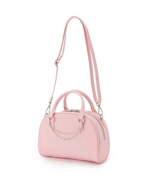 持つとトレンド感のあるスタイルが完成するラインストーンロゴ付きのショルダーバッグです。 ガーリーなピンクとスタイリングに合わせやすいシロの2色展開。 取り外し可能な飾りチェーンで気分によってさまざまなアレンジが楽しめる一品です。 500mLのペットボトルが入るサイズ感で、ハンカチやティッシュなどお出かけの必需品もしっかりと収納できるマチつきです。 ショルダーストラップはお好みの長さに調節が出来て外すことも可能なので手持ちスタイルとの2WAY仕様で楽しめます≪重さ≫F/約235g