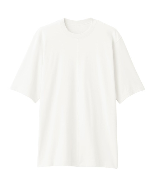 繊維長が長くしなやかな超長綿を使用しました。なめらかで肌触りがよく上質な着心地の良さが特長です。 【素材】 ジャージーの伸縮性と滑らかな落ち感で快適な着心地に仕上げました。細番手糸を使用することで、シルクのような滑らかな肌触りと美しい光沢を実現しました。強度にもすぐれているため繰り返しの着用でも型崩れしにくく、永く着用いただけます。 【デザイン】 男女兼用の半袖プルオーバーです。パジャマやワンマイルウェアとしても使えるよう、襟元と身幅にゆとりを持たせています。 袖の内側には縫い目を設けず、肩線は腕の動きに沿うよう後方へ配置することで、ストレスの少ない着心地を実現しました。 着丈を長めにしヒップ周りをカバーしつつ、スリットを入れて動きやすい仕様です。ネック・アームホール・袖切替・前中心は肌あたりに配慮した縫代処理を施しています。 【仕様】 透け感:なし(オフ白は若干あり) 伸縮性:ややあり フィット感:ゆったりめ お取扱い上のご注意 : ●濃色製品は使用中の摩擦や濡れた状態での接触により色移りする事があります。洗濯の際は他のものと分けて洗ってください。 お洗濯上のご注意 : ●淡色製品には蛍光増白剤入り洗剤を使用しないでください。 お洗濯上のご注意2 : ●プリント部分はアイロンでこすらないでください。