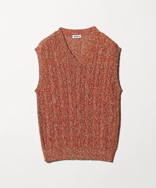 ケーブル編みで表現したマルチカラーのVネックベスト。 明るく爽やかな印象で、Tシャツやシャツとのレイヤードに最適。 春夏シーズンのスタイリングにアクセントを添える一着です。 ・メーカー品番:13-262-015/24ORANGE.62BLUE <COOHEM(コーヘン)> 日本の老舗ニットメーカー・米富繊維株式会社の自社ブランド。 いくつもの素材を組み合わせて編む「交編(こうへん)」技術は、長年培われた職人の技術と感性によって生み出されます。 素材開発から生産までの全工程が自社ファクトリーで行われ、その品質の高さには日本国内のみならず海外にも多くのファンを抱えています。 高い技術とディレクターである大江健氏のクリエイティビティが融合して開発される完全オリジナルのテキスタイルは、独特の立体感やカラーリングを生み出し、ファッション性の高いファクトリーブランドとしての地位を確立しています。 【注意事項】 ※商品に「取り扱い上の注意書き」、「洗濯表示」がございます場合は、使用前に必ずご確認ください。 ※商品画像は、光の当たり具合やパソコンなどの閲覧環境により、実際の色味と異なって見える場合がございます。あらかじめご了承ください。 ※商品の色味の目安は、商品単体の画像をご参照ください。 店舗へお問い合わせの際は、全国のUNITED ARROWS各店舗まで下記の品名/品番をお申し付けください。 品名:COOHEM 18 VT 品番:55695000334