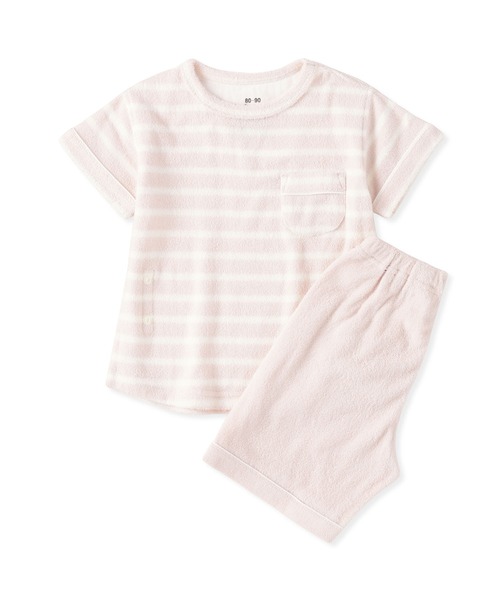 タオルに包まれているような着心地の両面パイル仕様です。綿はオーガニックコットンです。 120~130・140~150 サイズ「キッズ 着るタオル 両面パイル 半袖ルームウェアセット」もございます。 【素材】 肌に触れる生地の両面ループは綿100%で、肌にやさしいやわらかな伸縮性にすぐれた素材を使用しています。触り心地がよくタオルに包まれているような着心地で、お風呂上りにもおすすめです。 【デザイン】 ウエストは総ゴムで調整口があり、ゴムを引き出して縫い止めることで、体形に合わせて調整可能です。ゴムは固定していないため、取り替えもできます。おさがりにも配慮した、永く着ていただくための工夫です。 【仕様】 透け感:なし 生地の厚さ:やや厚め フィット感:ゆったりめ ウエストの仕様:総ゴム(調整口あり) 【適応サイズ表】 サイズ:年齢の目安 / 身長(cm) 80~90 :1才~2才半/ 75~95 100~110:3才~6才 / 95~115 120~130:6才~9才 / 115~135 140~150:10才~14才/ 135~155 お取扱い上のご注意 : ●本体に再生ポリエステルを13%使用しています。 お取扱い上のご注意2 : ●濃色製品は使用中の摩擦や濡れた状態での接触により色移りする事があります。洗濯の際は他のものと分けて洗ってください。 お取扱い上のご注意3 : ●素材の特性上、着用や洗濯・クリーニング時の摩擦により毛羽立ち、毛玉が発生します。その際はお早めに毛玉取り器などで手入れをしてください。 お取扱い上のご注意4 : 警告:火気に近づくと、表面の毛羽に着火することがありますので、ご注意ください。 お洗濯上のご注意 : ●淡色製品には蛍光増白剤入り洗剤を使用しないでください。 お洗濯上のご注意2 : ●洗濯ネットをご使用ください。