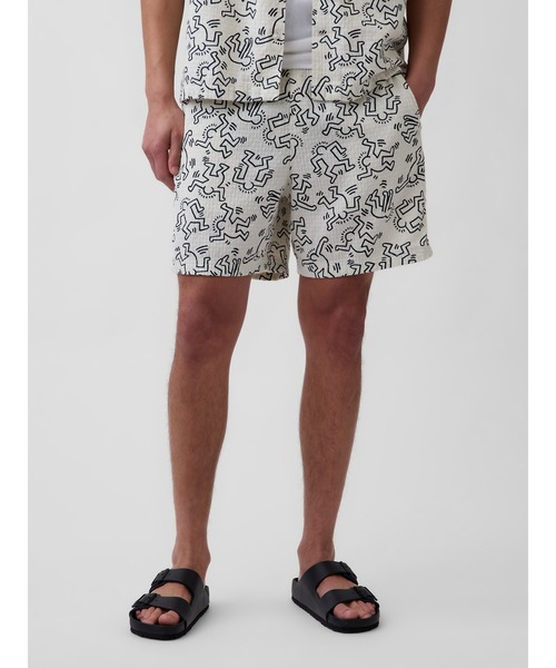 アーティストとして活躍する傍ら、映像制作やパフォーマンスにも取り組み、80年代のストリートカルチャーを象徴する存在だったキース・ヘリング。 世界中で展示を行う一方、識字支援やエイズに関する啓発などの社会的プロジェクトにも取り組んだ。 国際的な回顧展が数多く開催され、世界中の主要な美術館やコレクションに収蔵されている。 (C) Keith Haring Foundation. Licensed by Artestar, New York. 柔らかく心地良い肌触りのコットンプルオンショートパンツ ドローストリング付きウエストゴム フロントにスラントポケット、バックに箱ポケット 全体にキース・ヘリングのプリント *商品タグに記載の価格とサイト上の販売価格が異なる事があります。 【Gap ギャップ】1969年にアメリカ・サンフランシスコで創業以来、世界的なカジュアルファッションブランドとして、常にモダンなアメリカンカジュアルを提案し続けています。 ※商品画像は、光の当たり具合やパソコンなどの閲覧環境により、実際の色味と異なって見える場合がございます。予めご了承ください。