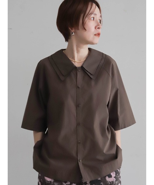 【FIL DE FER フィルデフェール】 2026 Summer Collection / PRE ORDER “ひんやり素材で夏も快適” 二重になった衿が特徴的なブラウス。 大きめのフラットカラーにV開きのネックを合わせて甘さひかえめに。 袖口に入れたタックもポイントです。 名前の通り、触れるとややひんやりと冷たさを感じる素材を使用。 透けにくいカラー展開でインナーに悩まず、暑い季節も涼しく過ごせます。 洗濯:洗濯機使用可 ※画像の商品はサンプルです。 実際の商品と色味、仕様、サイズ等が若干異なる場合がございます。 ※工場の生産の都合上、納期が変更になる場合がございます。 発送日の前後については予めご了承ください。