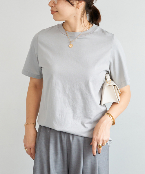 Deuxieme Classeの名品、Mme.CREW Tシャツに新色が登場。 大人の気品を纏えるスモーキーカラーTシャツ。 アメリカコットンの中でも最高級綿とも言われているスーピマコットンを使用。 上品な光沢感と柔らかなタッチが特徴。 程よいゆとりのあるオーソドックスなTシャツですが、上質な素材と日常に馴染むデザインはカラー違いで手に入れたい1枚。 ※同一商品(ホワイトのみ):25070500405010(若干の仕様変更がある場合がございます。) ※取り扱いについては、商品についている洗濯表示にてご確認下さい。 ※照明の関係により、実際よりも色味が違って見える場合があります またパソコン・スマートフォンなどの環境により、若干製品と画像のカラーが異なる場合もございます。 ※商品の色味は、商品アップ画像をご参照ください。 ※こちらの商品はお一人様1カラー・1サイズにつき1点までの購入とさせていただきます。 モデルサイズ:身長:162cm 着用サイズ:フリー 本体:手洗い可能