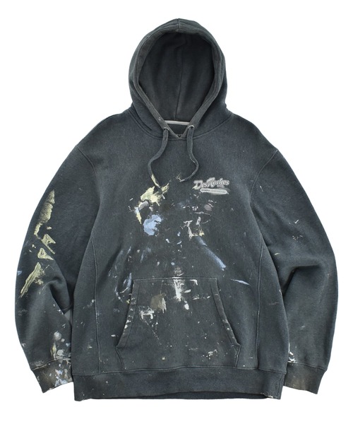 ※こちらはヴィンテージ商品となります。 下記のattentionをご確認の上、ご購入下さいますようお願いいたします。 --------------------------------------------------------- コンディションランク:C ■size タグ表記:XL 実寸:62cm/53cm/73cm/68cm(身幅/肩幅/着丈/袖丈[ゆき丈]) ■condition 色褪せ/汚れ/スレ/毛玉/着用感 ■point 全体に飛び散るように入ったペイント跡が強い存在感を放つプルオーバーパーカー。 グレーボディをベースに、ホワイトやイエロー系の塗料がランダムに重なり、意図せず生まれたような無骨な表情が特徴的な一着。 前後に入ったプリントも、ワークやストリートの空気感を自然に感じさせる仕上がり。 ボディはスポーツテックのしっかりとしたスウェット素材を使用。 内側は起毛仕様で、着用時の柔らかさと保温性を兼ね備えている。 フロントのカンガルーポケットやドローコード付きのフードなど、オーセンティックなディテールも揃い、日常使いしやすいバランスにまとまっている。 サイズはXL表記で、ラフに着られるゆとりのあるシルエット。 一点ごとに異なるペイントの入り方が魅力で、既製品にはない一点物のような雰囲気を楽しめるアイテム。 デニムやワークパンツと合わせるだけでスタイリングが成立する、主役として取り入れたい一着。 着用に伴う色褪せやスレ、ペイントの付着など、古着ならではのこなれた風合いを楽しめるコンディションです。 ■Vintage clothing store【LABORATORY®】 原宿に店舗を構える老舗Vintage Clothing Store。 バンドTシャツを中心に、独自のセレクトで個性的なアイテムを取り扱っています。 ZOZOTOWN STOREでは、現行のファッションにも馴染みやすく、古着特有の独特なムードやコンディションを気軽に楽しんでいただけるアイテムを提案いたします。 加工等では味わえない“リアル”な古着をお楽しみ下さい。 --------------------------------------------------------- ■attention ※こちらはヴィンテージ商品のため1点ものです。 交換・修理はいたしかねます。 ヴィンテージ商品につき、どちらの商品にも多少のシミ・ダメージ・使用感がございます。 このようなヴィンテージ商品の性質を十分ご理解いただいた上で、ご注文くださいますようお願いいたします。 商品状態につきましては詳細にお伝えするよう努めておりますが、細かな点の表記には限りがございます。 画像につきましても、実商品の色味に近しいものを掲載するよう心がけておりますが屋内での撮影のため、多少の誤差が生じる場合がございます。 また、ご覧のモニター環境により、画像の色味と多少異なる場合がございます。 どうかご理解いただきますようお願いいたします。 ※コンディションランク コンディションランクは当店の主観により判断しておりますので、あくまで一つの目安とお考えいただき、商品の写真や説明文と併せてご参照ください。 軽微なダメージや薄い汚れ、多少の色褪せなど、USEDの使用感の範囲内と判断したものは説明を省いている場合がございます。 S:未使用または新品の商品など A:使用感が少なく、かなり状態が良いなど B:使用感はあるが、傷や汚れが少ないなど C:使用感の他、傷や汚れが見られるなど D:かなり大きな傷みがある難ありなど --------------------------------------------------------- お気に入り登録のオススメ ▼商品のお気に入り登録▼ 再入荷、残り1点、セールなどの通知を受け取ることができます。 ▼ブランドのお気に入り登録▼ 新商品や再入荷、ショップのおすすめトピックスなど、いち早くブランドの情報を受け取ることができます。 ---------------------------------------------------------