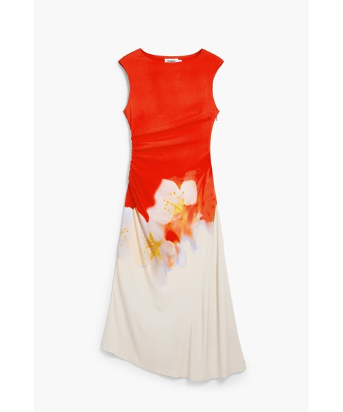 ウエストにドレープがあり、花柄プリントが施された、2色デザインのノースリーブミディドレス。 【Desigualデシグアル】 バルセロナ発のファッションブランド「Desigual(デシグアル)」。スペイン語で“他とは違う”という意味が現すとおり、他のブランドにはない地中海をイメージさせるカラフルな色使いやエキゾチックなパターン、パッチワークやデニムなど着る人の個性を引き立てるアイテムを展開。デイリーにも、ドレスアップにも活躍する幅広いデザインが魅力。レディースだけではなく、メンズやシューズなど幅広いラインナップを展開。ブランド名にもなっているDesigual(他とは違う)は、自分自身が他の人と違うことがどれだけ大切で楽しいことなのかを改めて感じてもらいたいという私たちの願いが込められています。自由で楽しく、カラフルで前向き。本当の自分を呼び覚ます鮮やかなカラーやプリント、他とは一味違うスタイルはファッションを楽しくするものばかりです。