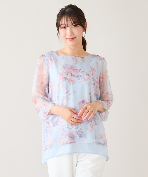 後ろ姿まで、可憐。軽やかに着映えるレイヤード風ブラウス ・毎シーズン人気のリボン風デザイン×レイヤード風ディテールが目を惹くブラウス ・シフォンジーにローズプリントを重ねたプリントはRose Tiaraオリジナル ・プリントにシフォンを重ねた軽やかな素材感が、動くたびにふんわりと優しい印象に ・パンツにもスカートにも合わせやすく、デイリーにもお出かけにも活躍 ・バックスタイルのリボンが、上品な可愛らしさを添えてくれる一枚 Series ワンピース/ 51012607 ************************************ 透け感: なし 裏 地: 裏なし ポケット: なし ************************************ モデル身長: 166cm/ 38号着用 詳細着用モデル身長 166cm / 着用サイズ 38号 *取り扱いについては、商品についている品質表示でご確認ください。 *撮影環境により、実際と色味が違って見える場合があります。 また、PC・スマートフォンなどにより、製品と画像のカラーが異なる場合もございます。 *商品画像はサンプルのため、色味やサイズ、プリント位置、仕様などに変更がある場合があります。 *50号は一部の店舗・ONLINE SHOPのみの展開となります。取扱いしていないサイトもございますのでご了承ください。 【RoseTiara/ローズティアラ】 フェミニンな愛らしさと、大人のエレガンスを一度にまとう服。 「可愛い」をずっと手放さない、あなたのためのブランドです。 素材選びからデザイン、パターンまでを一貫して行い、タックの向きやギャザー分量、フリル位置などを36・38・40号と42・46・50号では調整し、パターンを分けることで美しいシルエットと着心地の良い服を提案します。
