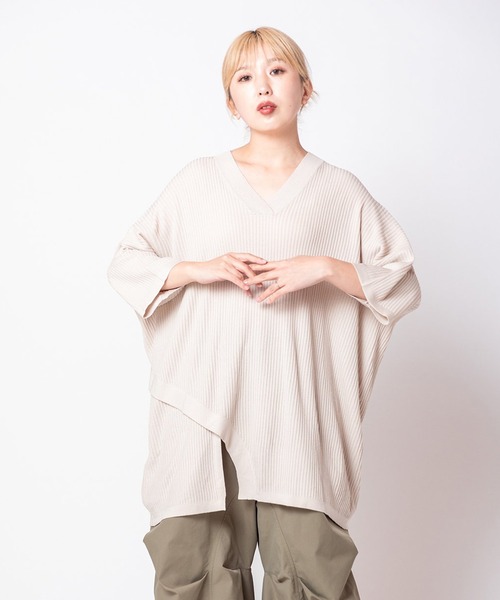 Spring Summer collection リラクシーな着心地をベースに、Vネックとスリットがすっきりとしたバランスを整える。 落ち感のあるリブニットは、ドライな風合いで心地よい肌触り。 =========================== 透け感: ほぼなし(L.BEIGE) 伸縮性: あり 光沢感: なし 裏地: なし 素材について: ドライな質感の変則的なリブ編ニット =========================== 【洗濯表示】 手洗い可 ■商品のお気に入り登録 クーポンやタイムセール、再入荷通知やラスト1点など お得な情報を受け取ることができます。 ご登録をお忘れなく◎