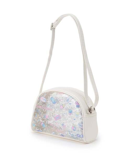 キラキラのラメやスパンコールを全面に閉じ込めたポシェットです。 シーズンテーマのFancy Pop総柄をプリントした透明生地の中でシャラシャラとラメが動く仕掛けがポイント。 マチをしっかりとっており、お出かけの必需品がスッキリ収納できます。 中に入れるものによってガラリと印象がかわる商品で推しのぬいぐるみなどと一緒におでかけするのがおすすめです。 ≪重さ≫F/約245g