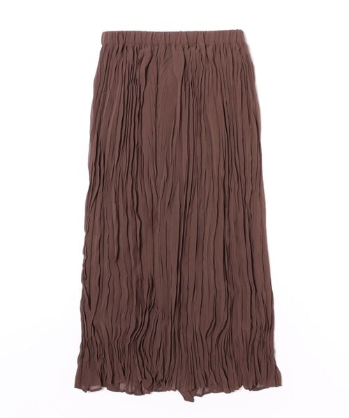 軽やかな透け感が魅力の、ワッシャープリーツロングスカート。 ランダムに入ったワッシャープリーツが、 歩くたびに揺れて表情豊かなシルエットを演出します。 ウエストはゴム仕様で着脱しやすく、 リラックス感のあるフィット感。 柔らかく軽いシアー素材を使用しているため、 春夏シーズンも涼しく快適に着用いただけます。 ポリエステル素材なので着用中のシワも気にならずお手入れも簡単です。 Tシャツやブラウスと合わせてカジュアルに、 シャツやニットを合わせれば大人のきれいめスタイルにも。 軽やかで女性らしい動きのあるデザインが、 一枚でスタイリングを格上げしてくれる万能ロングスカートです。