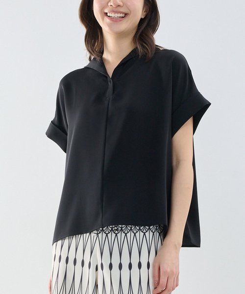 2025SSのビッグシルエットバンドカラーシャツをブラッシュアップし、新たにセーラーカラーのプルオーバーをプラスしたシリーズ。昨シーズンと同様の生地を使用し、とろみのあるしなやかな風合いを楽しめるデザインに仕上げました。大人が着るセーラーカラーをイメージした小さめの襟元がポイント。V開きの高さにこだわり、レイヤードすることなく1枚でも着やすい設計。ボトムスからタックアウトしたスタイリングがおすすめです。 ・多少透け感あり ・ストレッチなし ・カラー展開はホワイト、ブラック ・サイズ展開は1(M)9号・3(2L)13号