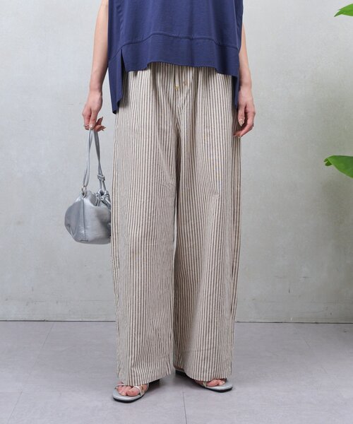 -商品ポイント- ・季節感たっぷりのリネン混パンツです。 ・細めのストライプで、カジュアルすぎない柄パンツです。 ・程良いワイドシルエットで、足のラインを拾いにくいです。 ーマテリアルー ■透け感:なし ■裏地:なし ■伸縮性:なし ■光沢感:なし ー洗濯方法ー 洗濯機洗い(弱弱) ー注意事項ー ・画像の商品はサンプルです。 実際の商品と仕様、加工が若干異なる場合があります。 ・サイズ表記はあくまで目安となります。 【お買い物をよりお楽しみいただくために】 ―気になるアイテムはお気に入り登録をしておくと便利です― ・お気に入り登録した商品はメニューの「♡お気に入り」ボタンから、一覧表示することができます。 ・商品の再入荷・在庫ラスト1点などの情報を受け取ることができます。 ・値下げやクーポン情報を受け取ることができます。 ・予約商品は通常商品切り替わり時にお知らせがきます。 スマートフォンの場合・・・商品画像右上に表示されている「♡」をタップしてください。 パソコンの場合・・・「カートに入れる」ボタン横に表示されている「♡」をクリックしてください。 ーPALCLOSETアプリのブランドフォローがおすすめですー ・新商品やお得な情報をいち早くcheckする事が出来ます。 ・スタッフコーディネートや店舗ごとのブログをお楽しみ頂けます。 __________________________________ ※取り扱いについては、商品についている品質表示でご確認ください。 ※照明の関係により、実際よりも色味が違って見える場合があります。 またパソコン・スマートフォンなどの環境により、若干製品と画像のカラーが異なる場合もございます。予めご了承ください。 ※詳細画像の色合いをご参照ください。予めご了承ください。