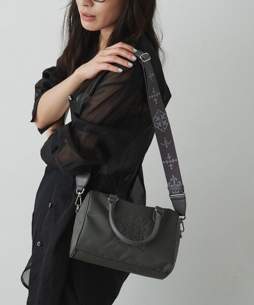 端正なミニボストンフォルムに、高耐久なコーデュラナイロンを掛け合わせた2WAYバッグ。 カジュアルさの中に、ほどよいハリと落ち着いた表情を備え、きれいめな装いにも自然と馴染みます。 日常に気負いなく持てる軽やかさと、品のある佇まいを両立しオンオフ問わず活躍する、頼れる存在です。 【デザイン】 丸みのあるコンパクトなボストンシルエットに、立体感のあるモノグラムをさりげなくあしらったデザイン。 主張しすぎない表情が、スタイリングにほどよいアクセントを添えます。 ナイロン素材ながらラフになりすぎず、すっきりとした印象に仕上げているのもポイント。 カジュアルからきれいめまで、幅広いコーディネートにバランスよく合わせていただけます。 【ポイント】 ・ハンド持ちとショルダーの2WAYで使えるミニボストン ・コンパクトながら500mlペットボトルや長財布も収納可能 ・左右どちらからでも開閉しやすいダブルファスナー仕様 ・外装ファスナーポケット付きで、小物の出し入れもスムーズ ・高耐久なコーデュラナイロンを使用し、デイリーに頼れる仕上がり 【仕様】 ・開口部:ダブルファスナー仕様 ・内装:オープンポケット×2、ファスナーポケット×1 ・外装:ファスナーポケット×1 ・使用金具カラー:シルバー(グレー)、ゴールド(グレージュ、ダークブラウン) 【素材】 コーデュラナイロン 摩耗などに強い高耐久素材、コーデュラナイロンに水や汚れにとても強いテフロン加工を施しています。 カジュアルながらも上質なハリがあり、使い込むほどに柔らかく馴染みます。 アクティブな日常にも寄り添いながら、落ち着いた品を感じさせる素材です。生地表面には細かな凹凸と起毛感があるため、繊維などが付着する場合がございます。 ご使用後は、粘着テープなどで軽く叩くようにしてお手入れしてください。 【カラー展開】 ・グレー(Gray)…コーディネートのポイントになる、カーキがかったグレー。カジュアルスタイルはもちろん、シャツなどと合わせたキレイめスタイルにも。 ・グレージュ(L.Greige)…肌馴染みの良いニュアンスカラー。同系色のお洋服と合わせると、洗練されたエレガントな雰囲気に。 ・ダークブラウン(D.Brown)…グレーみを帯びた、落ち着きのあるダークブラウン。重たくなりすぎず、シックな印象でスタイルを引き締め、きれいめからカジュアルまで幅広く馴染みます。 Made in Japan 【注意事項】 ・撥水加工は経年によって効果は薄れてまいります。 ・本革を使用した製品のためシワ感のある部分や、キズがある部分と、生活によって生まれたその個体ならではの個性がございます。 ・革個性や革の表情はお選びいただく事はできません。予め天然素材であることをご了承の上お買い求め頂くようお願いいたします。 ・また水濡れや摩擦により色落ちや洋服への色移りが発生する可能性がございます。 CE-1721-WEB