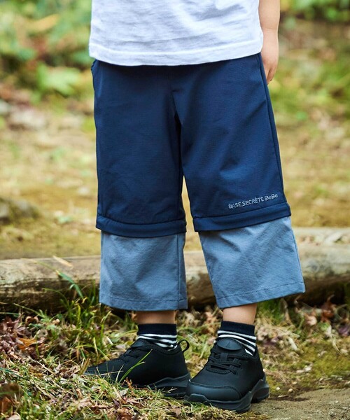 -26SS- コーデに合わせた2way仕様で楽しめるカジュアルパンツ。 ■デザイン 配色の切り替え部分がファスナーになっていて取り外すことで長さが変えられるコンバーチブルデザイン。 7分丈と5分丈の着丈になっています。 アクティブな印象のシャリ感のあるリップストップ素材を使用。 トレンド感のあるやや太めのシルエットで、スポーティーかつ軽快な着こなしを叶えてくれます。 膝部分には刺しゅうロゴのワンポイント。 カラーはネイビーとグレーの2色展開。 ■素材/機能 薄手で軽さがありつつも丈夫で破れにくいのが特徴のリップストップ生地を使用。 ストレッチも効いていて動きやすいアクティブなシーンでも使いやすい1着です。 ※両脇・右後ポケットあり。 ※ウエスト裏にゴム調節口あり。 26春夏 男の子アイテム 【4月 BOY】 - 森の秘密基地 - 緑豊かなヴァンセンヌの森でサマーキャンプ! 森を散策したり、生き物を観察したり、自然の中を探検しよう。 機能性のあるデティールを取り入れたアクティブなカジュアルコーデ。 【2026年春夏 シーズンテーマ】 -今日は何しよう?- トラッドでベーシックなアイテムやスタイリングに、軽やかな素材づかいやクリーンな発色とクラフト感あるディティールづかいで楽しさをプラス。 「今日は何しよう?」のわくわくした気持ちをファッションを通して表現します。 【BeBe(べべ)】 ”LOVE MODERN” 少しおませで、生意気なヨーロピアンカジュアルの提案。 時代性・流行性をとらえ、ベーシックでもワンポイントを施した遊び心、楽しさを盛り込んでいます。 シンプルだけど、こだわりのあるオリジナリティーを重視しています。