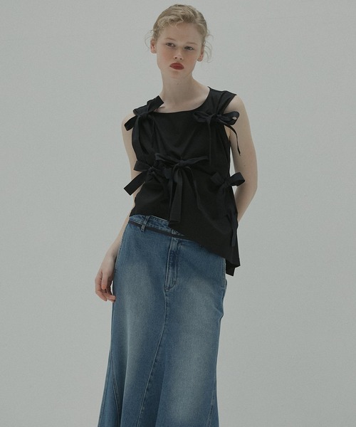 別布のリボンで身頃をシェイプしてシルエットを出したアシンメトリージャージートップス。 身頃はジャージー素材、リボンは布帛を使用した、生地の違いからくる表情感がポイントです。見頃に穴を開け紐を結ぶ仕様で、穴の位置を工夫し絞って形を出すことで、デザイン性と着心地の良さを両立させ、気軽に着用できるようデザインしました。 ******************** 透け感:あり 裏地:無し 伸縮性:ややあり 光沢感:なし 洗濯:液温40℃限度とし、手洗いができる ******************** ※照明の関係により、実際よりも色味が違って見える場合があります。 またパソコン・スマートフォンなどの環境により、若干製品と画像のカラーが異なる場合もございます。 予めご了承ください。 ※商品の色味は、商品アップ画像をご参照ください。 ※デザイン性のある商品の為、サイズ表記を必ずご確認ください。 【LE CIEL BLEU】 忙しい日々を送る中でも、いつもスタイリッシュで、心地よくいたい、そしてクールで時にフェミニンでありたい、 常にファッションを心から楽しんでいたいという思いを表現しています。着心地の良さも重視し、またスタイリングのバリエーションを楽しめるデザインとバランス感も追求しました。それぞれのステージにおいて、多彩なライフスタイルを送る大人の女性のためのブランドです。