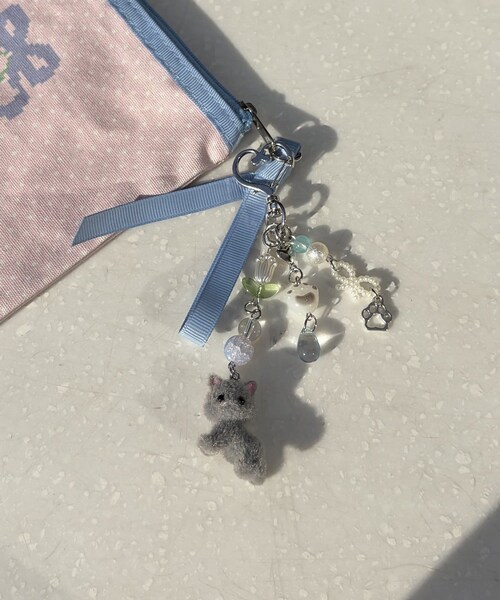 愛らしい表情に思わずきゅんとする、ネコモチーフのチャームふわふわとした手触りのネコちゃんは、見ているだけでも癒される存在感です。動くたびにしゃらしゃらと揺れるパーツが、いつものバッグやポーチを華やかにアップデート。簡単に付け外しができるので、キーホルダーとしてお使いいただくのもおすすめです。コーディネートにさりげない可愛さをプラスしてくれるアイテム。ご自身用にはもちろん、お友達へのちょっとしたプレゼントにもぴったりです。カラーは、シックな「グレー」と柔らかな印象の「ホワイト」の2色をご用意しました。