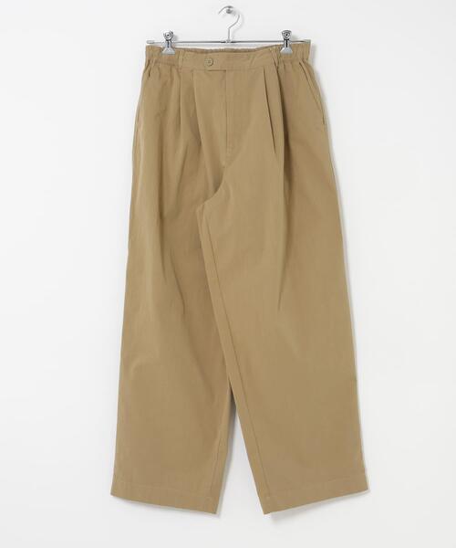 フロントに深く入った2タックとワイドシルエットが特徴的なワイドパンツです。 素材は、特殊なシワ加工を施したブランドオリジナルのコットンナイロン素材を使用。 自然なシワ感と程よいハリ感が特徴で、毎日ガシガシ履いて頂きたい一本です。 ヒップ周りにゆとりを持たせ、裾に向かって少しだけテーパードさせたワイドテーパードシルエットを採用しました。 【FORK&SPOON(フォークアンドスプーン)】 DOORSのプライベートレーベル。その名前のとおり「毎日食事を摂るように、毎日大切に着てほしい」という思いが込められています。毎日着たくなる様な心地のよいベーシックスタイルは、世代を超えてお楽しみいただけます。 【2026 Spring/Summer】【26SS】 ※この商品は、長時間強い日光や照明を受けますと、変色するおそれがあります。ご着用や保管の際は、充分にご注意ください。 ※商品画像は、光の当たり具合やパソコンなどの閲覧環境により、実際の色味と異なって見える場合がございます。予めご了承ください。 ※商品の色味の目安は、商品単体の画像をご参照ください。 ▼お気に入り登録のおすすめ▼ お気に入り登録された商品は、マイページにて現在の価格情報や在庫状況の確認が可能です。 お買い物リストの管理にぜひご利用ください。 素材感 透け感 : なし 伸縮性 : なし 裏地 : なし 光沢 : なし ポケット : あり 45