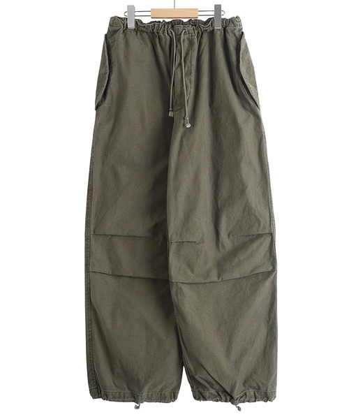 【デザイン】 ・marka定番のミリタリーオーバーパンツを、今季はよりワイドなシルエットにアップデート ・ウエストはゴムとドローコードによるイージー仕様で、快適なはき心地とサイズ調整のしやすさを両立 ・裾口にはスピンドルを配し、シルエットの変化を楽しめるデザインに ・硫化染料による染色で、着用と洗いを繰り返すごとに味わい深い色落ちと経年変化を楽しめる一本 ・カラーはオリーブとブラックの2色展開で、それぞれ異なる表情を楽しめる ・縫製部分のパッカリングにより、立体感と豊かな表情が生まれるミリタリーライクな仕上がり 【素材】 ・トルコ産オーガニックコットンを使用した、高密度のバックサテン生地を採用 ・しっかりとしたハリとコシを持ちながらも、天然繊維ならではの柔らかさを感じられる素材感 ・はき込むほどに風合いを増し、自分だけの一本へと育てていける 【シルエット・サイズ】 ・腰まわりから裾にかけてたっぷりとゆとりを持たせたルーズフィット ・裾の絞りで丸みを出したりストレートに落としたりと、幅広いスタイリングに対応可能