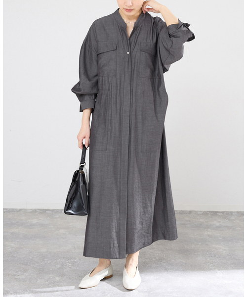 【2026SS】 IENA 軽やかなシャンブレー素材でお作りした、2WAY仕様のワークワンピース。 フロントを閉じてワンピースとして着るのはもちろん、前を開けてさらっと羽織れば、こなれた印象のレイヤードスタイルも楽しめます。 ポリエステルに再生繊維(セルロース)と麻をブレンドすることで、しなやかな落ち感と軽やかさを両立。 麻混ならではの表情感がありながらも、品よく着られる素材感に仕上げました。 大きめのポケットやベルトディテールがほどよいアクセントになり、シンプルながらも一枚で着映えするデザイン。 ウエストの絞り具合でシルエットに変化をつけられるので、その日の気分やスタイリングに合わせて印象を変えて楽しめます。 一枚でさらりと着るだけでなく、パンツを合わせた着こなしもおすすめ。 デイリーに取り入れやすく、ロングシーズン活躍する一着です。 ※取り扱いについては、商品についている品質表示でご確認ください。 ※こちらの商品は、IENAでの取り扱いになります。 直接店舗へお問い合わせの際はIENA店舗へお願い致します。 ※照明の関係により、実際よりも色味が違って見える場合があります。 またパソコン・スマートフォンなどの環境により、若干製品と画像のカラーが異なる場合もございます。 予めご了承ください。 ※商品の色味は、商品アップ画像をご参照ください。 モデルサイズ:身長:163cm 着用サイズ:36 本体:手洗い可能