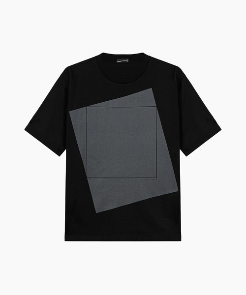 オリジナルの天竺素材を使用したビッグTシャツ。 自然で上品な光沢と目の立った美しい表情、タフでありながらしなやかな風合いも兼ね備えた、 贅沢な素材に仕上げています。 肩線から後ろネックにかけては、タコバインダー仕様でテープ処理を施し、型崩れを防ぎながら耐久性も向上。 シーズンを問わず快適な着心地で、長くご愛用いただけます。 ミニマリズムのアーティストRobert Mangoldの作品から着想された柄をプリントしています。 裾にサイドスリット ※着丈は前身頃のサイズを記載しています