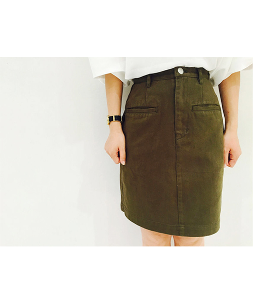 Kastane(カスタネ) 人気の台形スカートがONLINE SHOP限定で再入荷♪ 色々なトップスにも合わせやすいシンプルなスカートは、デイリーファッションのマストアイテム。台形シルエットですっきりとした印象に仕上げながら、ウエスト位置が高めなので脚長効果も。バックがゴム仕様なので楽ちんボトムです♪シーズンレスでお使い頂ける優秀なアイテムです☆ ※ブラック/ベージュ/カーキにはクラッシュ(破れ)加工はありません。